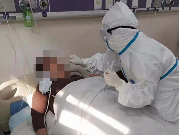 (▼急診科護(hù)士長在為患者取標(biāo)本)