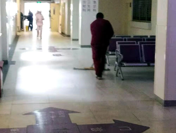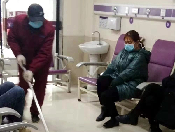(▼醫(yī)院對門急診、各通道、候診椅等角落進(jìn)行消毒處理)